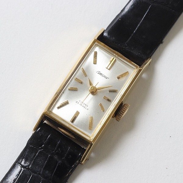 【FA418】◆CITIZEN シチズン amour アムール 23石 手巻き スクエア フレンチクロコレザーベルト レディース 腕時計 收藏