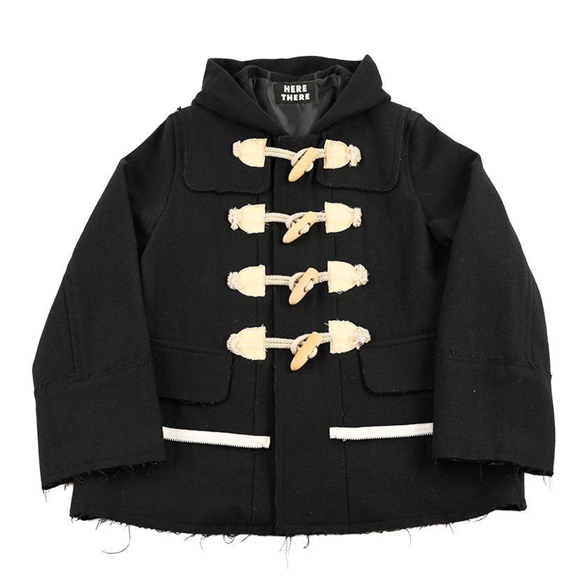 | ブランド・素材・デザイン特徴 | ヒアゼアショップの売り場は、パンクファッション、ミリタリーファッションの二部構成でした。 この商品はパンクファッションダッフルコートです。 このブランドの購入きっかけは、1999年前後に雑誌Zipper、KERAには、女子パンクファッションブランドが沢山掲載されていました。娘(高校生、中学生)たちが、その中でも好きなブランドだったからです。 本体には、飾りポケットしかありません。手を入れたり物を入れることができません。 3つのポケットを取り外すとショートダッフルコートになります。 |