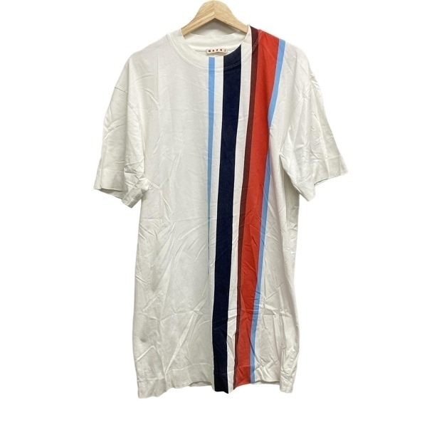 マルニ MARNI サイズ40 M - 白×レッド×ブルー レディース 半袖/ひざ丈/ストライプ/Tシャツワンピ ワンピース 收藏