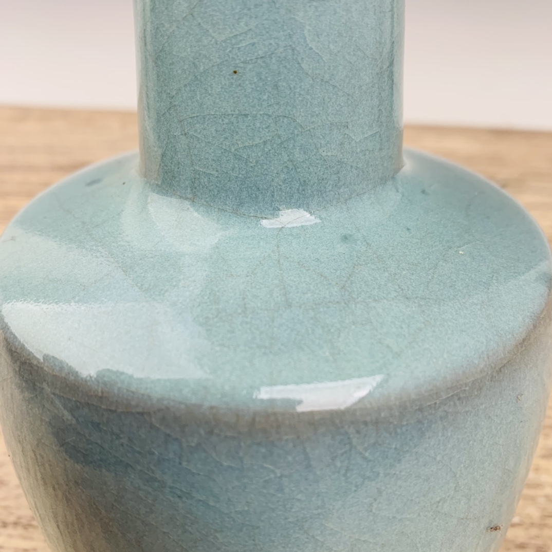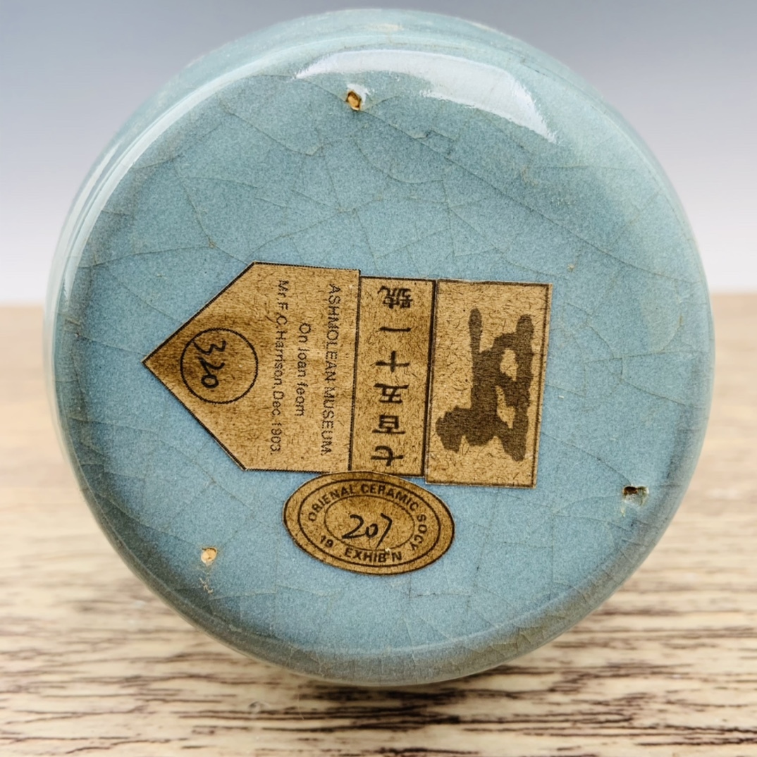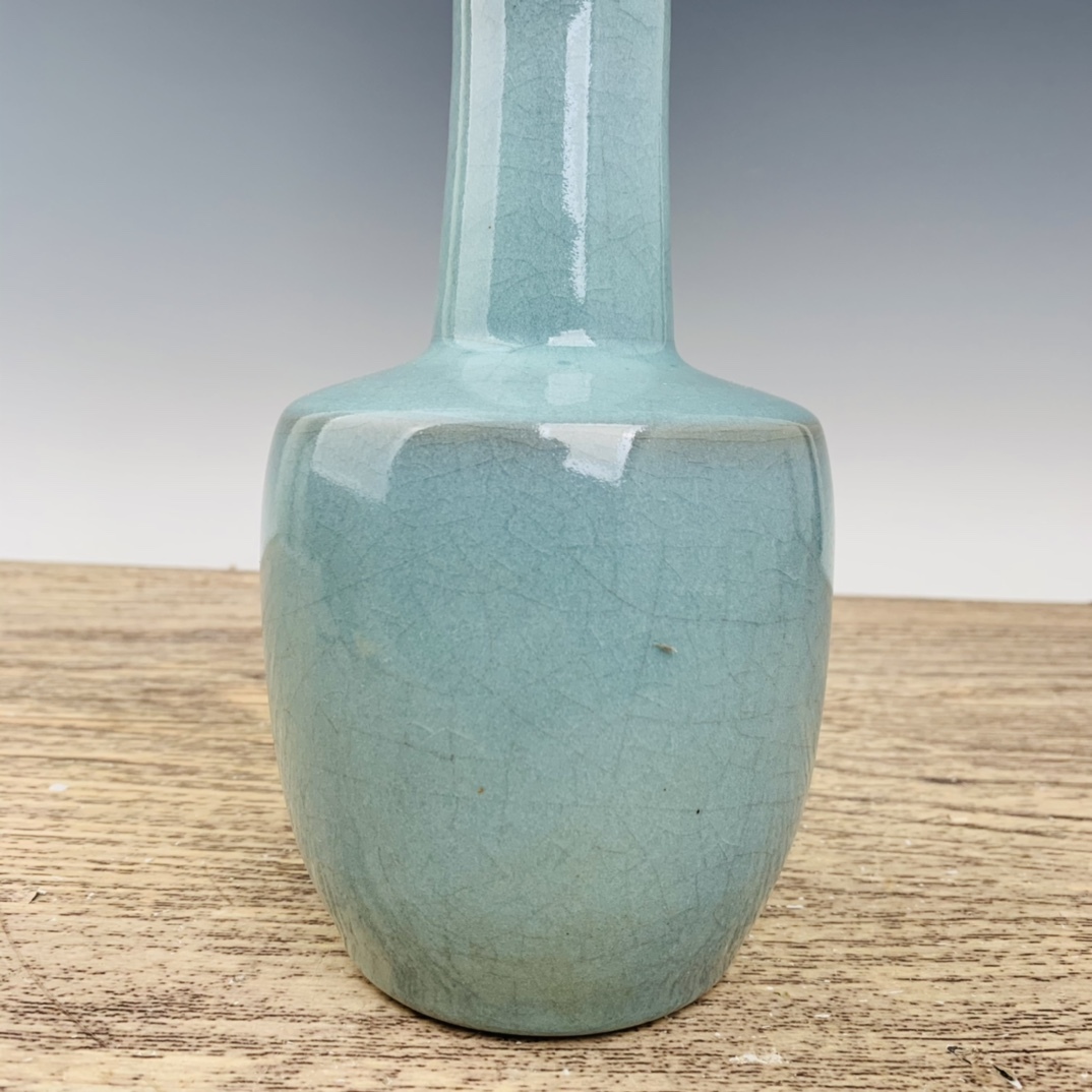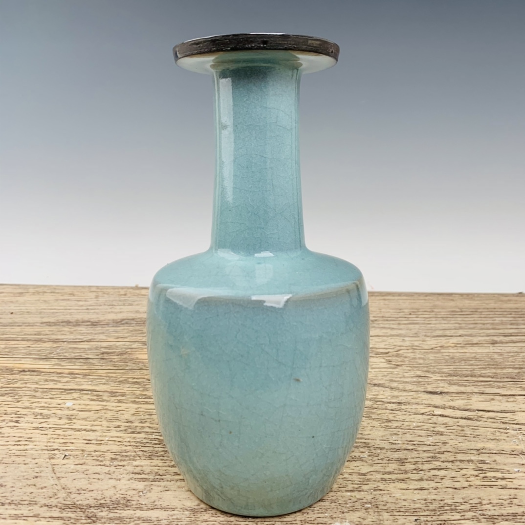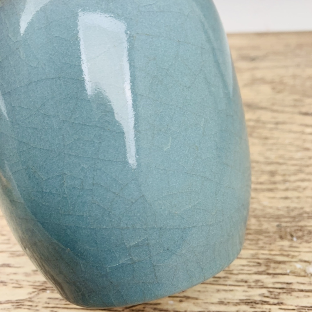 秘藏 宋時代 時代物 汝窯 天青釉盤口瓶唐物 陶磁器 共箱付き 古賞物 置物 中国美術 高さ22.5 cm、直径11 cm 古物保証 ly8.24 收藏