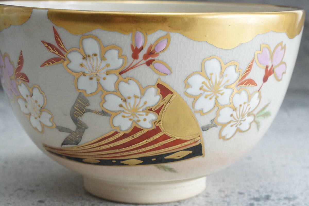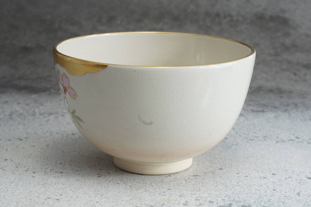 京焼 金雲桜花 寿楽銘 川添寿楽 12cmx7.5cm / 茶道具 抹茶器 茶懐石 茶事 茶碗 抹茶碗 織部 志野 古瀬戸 表千家 裏千家 抹茶 收藏