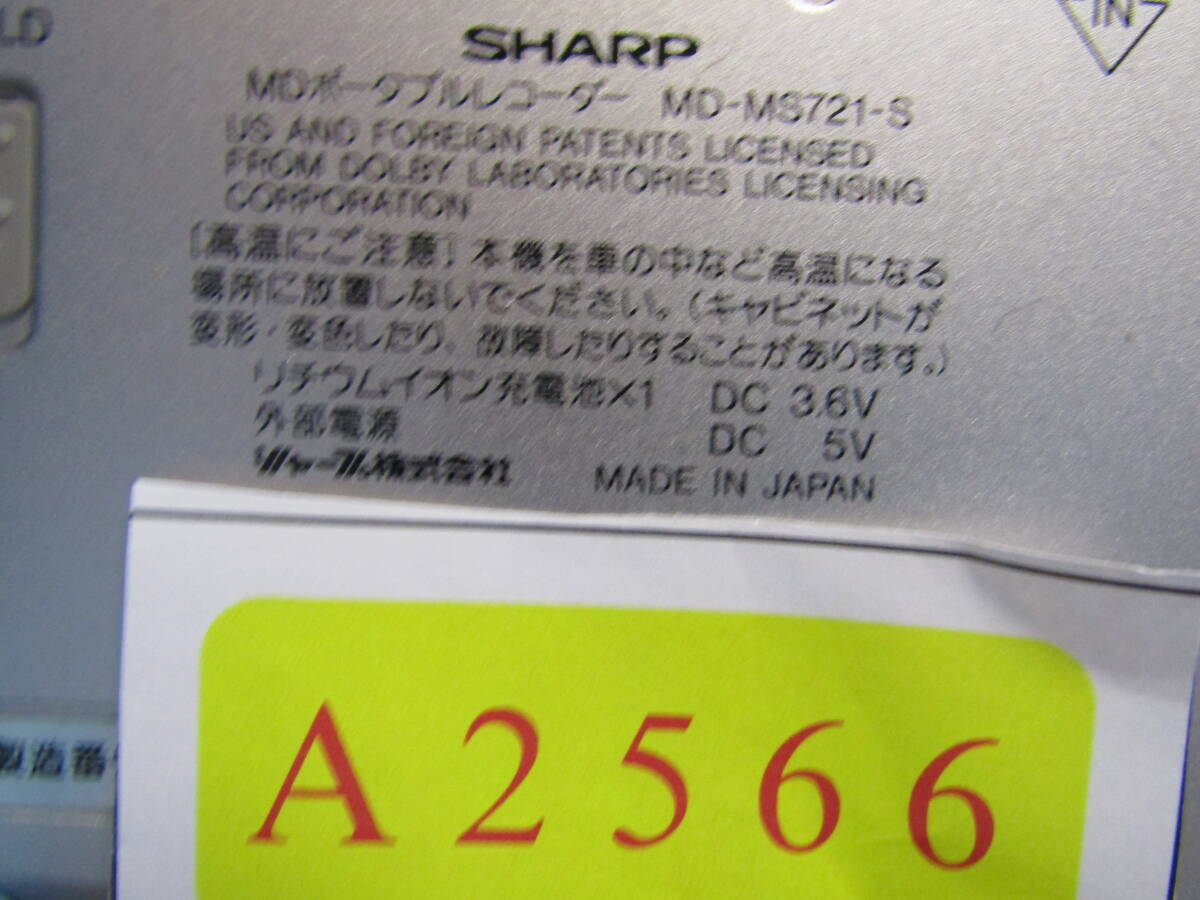 A2566 SHARP MDポータブルレコーダー MD-MS721-S