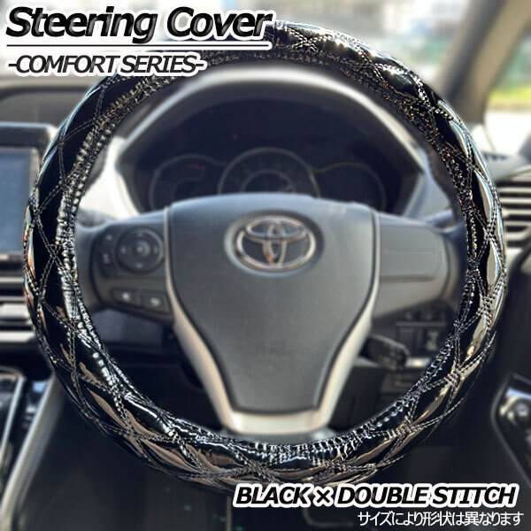 【在庫有・即納可】ハンドルカバー N-BOX カスタム JF3 JF4向け ステアリングカバー ブラック 36-37CM ダイヤキルト ダブルステッチ 收藏