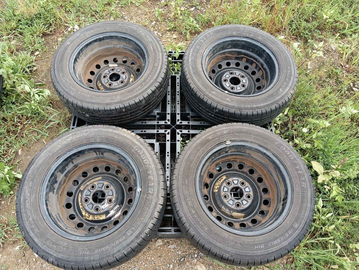 スチールホイール 15インチ 6J約+50 PCD114.3 5穴/タイヤ GOOD YEAR EAGLE RV F 195/65R15 2015年製 4本 IW53-1 收藏