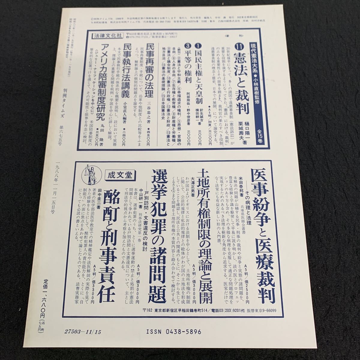 Ge-187/判例タイムズ675/昭和63年11月発行/判例タイムズ社/特報/最高裁判例/行政労働裁判例/民事裁判例/刑事裁判例/速報/L10/70922 收藏