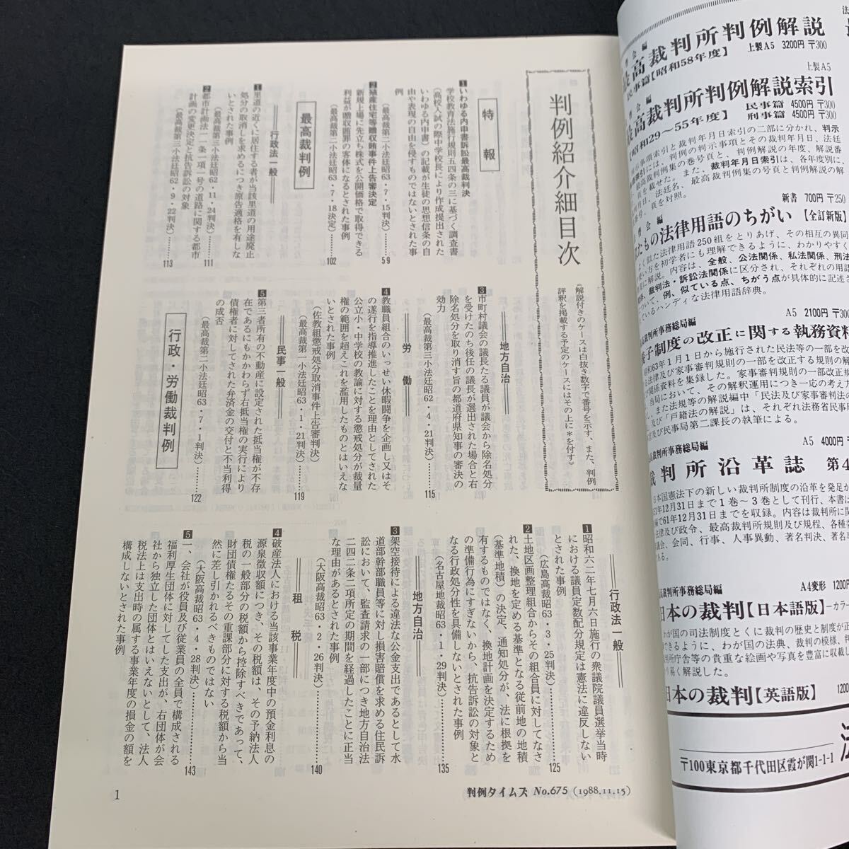 Ge-187/判例タイムズ675/昭和63年11月発行/判例タイムズ社/特報/最高裁判例/行政労働裁判例/民事裁判例/刑事裁判例/速報/L10/70922