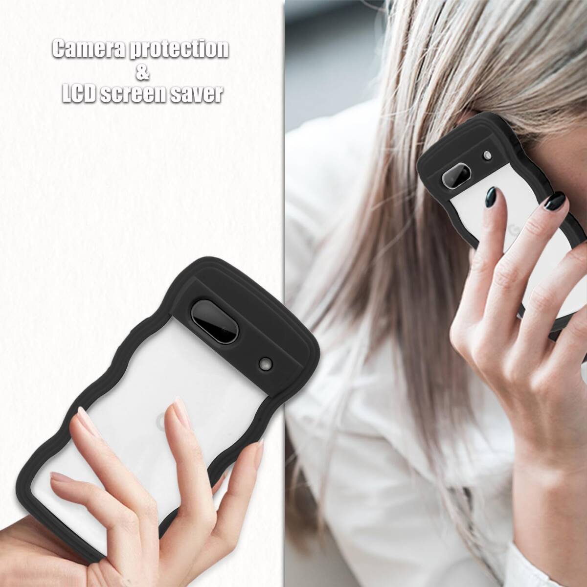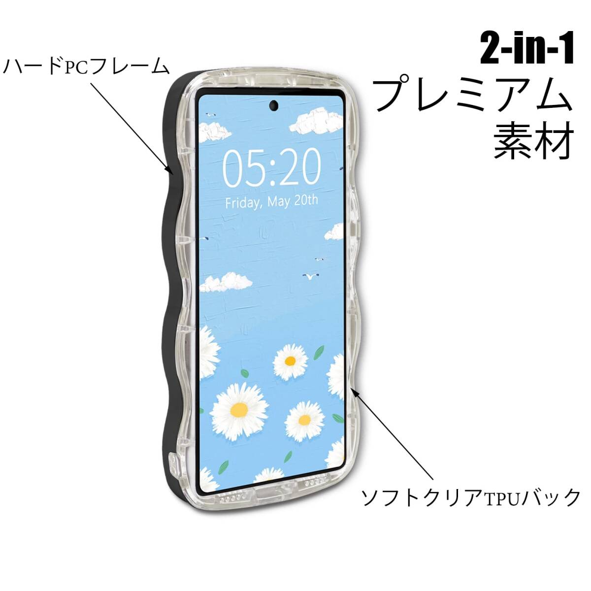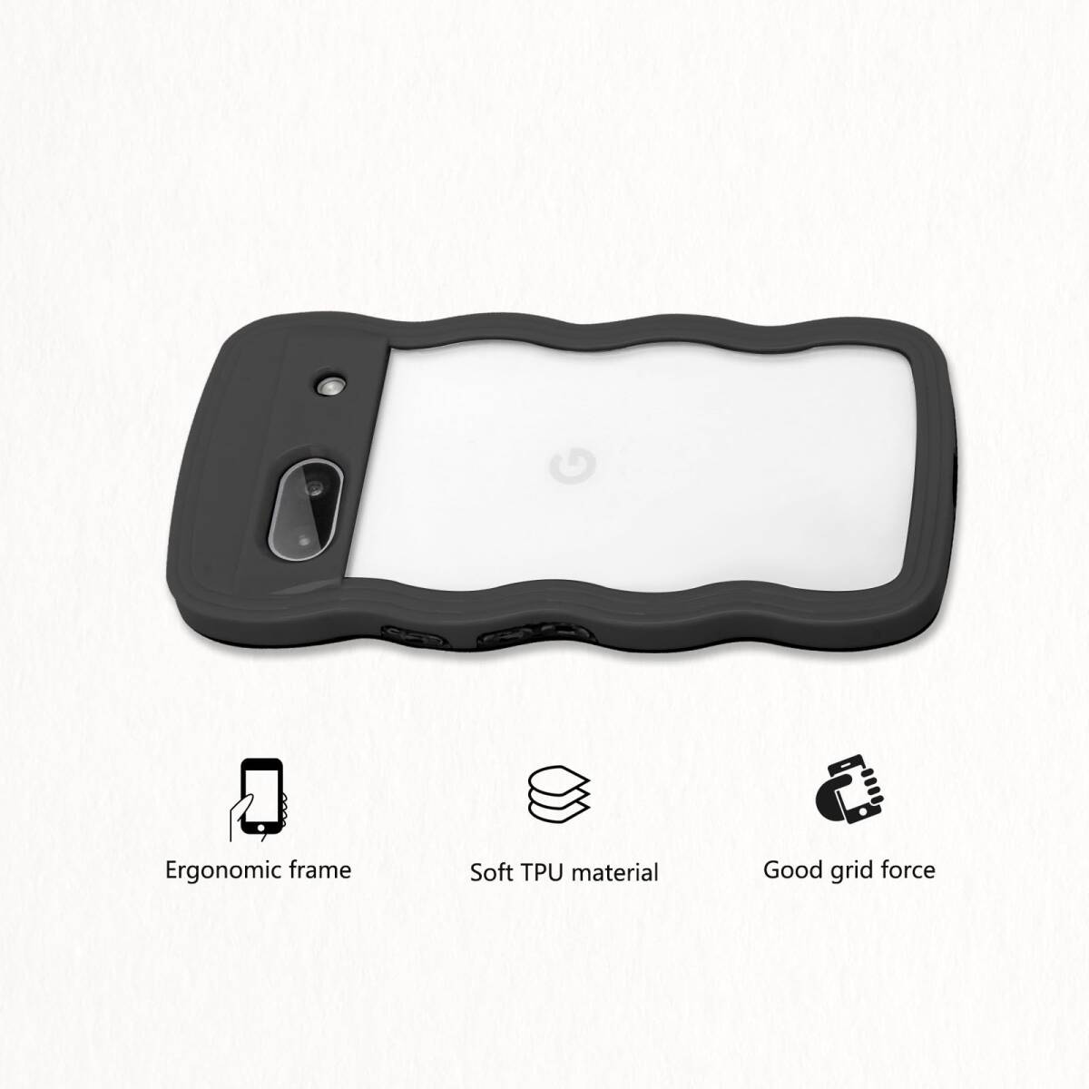 Google Pixel 8A ケース クリア ウェーブ ピクセル 8A TPU波状フレーム うねうね グーグル ピクセル8A 滑り止め スマホケースウェーブ デザイン 手にフィット 韓国 可愛い 女性用 女子向け 透明 ケースカバー 人気 落下防止 耐衝撃 ストラップホール付き グーグルピクセル8A なみなみ ワイヤレス充電対応(Google Pixel 8A-ブラック)