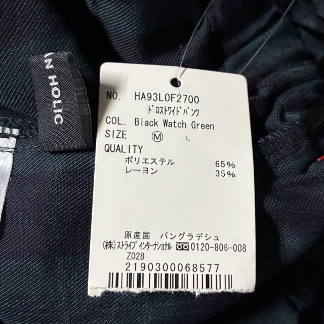 C34◇AMERICAN HOLIC | アメリカンホリック ドロストワイドパンツ ブラック×グリーン レディース Mサイズ 中古品 收藏