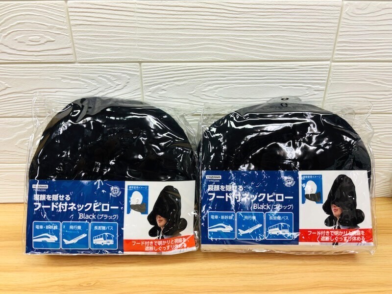 A772 新品 YAZAWA ヤザワ 2個セット 肌触り抜群 寝顔を隠せる フード付き ネックピロー Black ブラック ペア 電車 新幹線 夜行バス 收藏