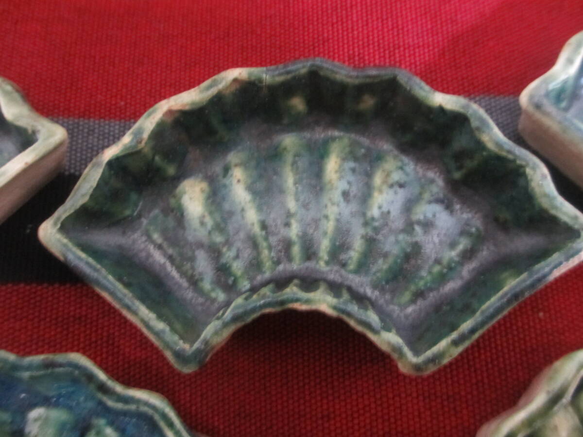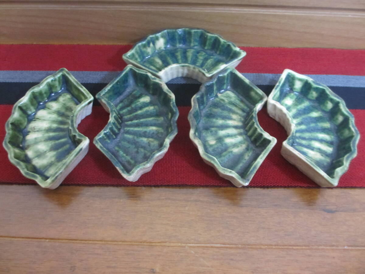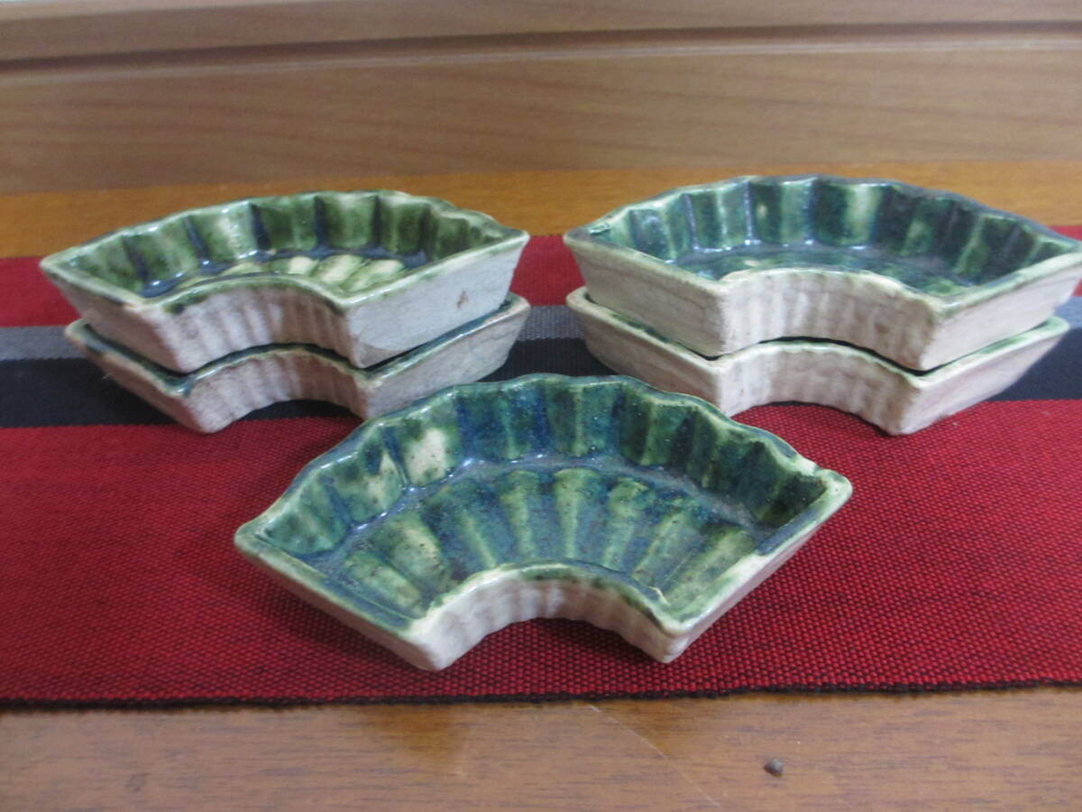 緑釉が見事に施されている時代が出ている扇型の織部焼です。見栄えも良く五客揃っています。| 出价者 | 信用 | 价格 | 时间 |