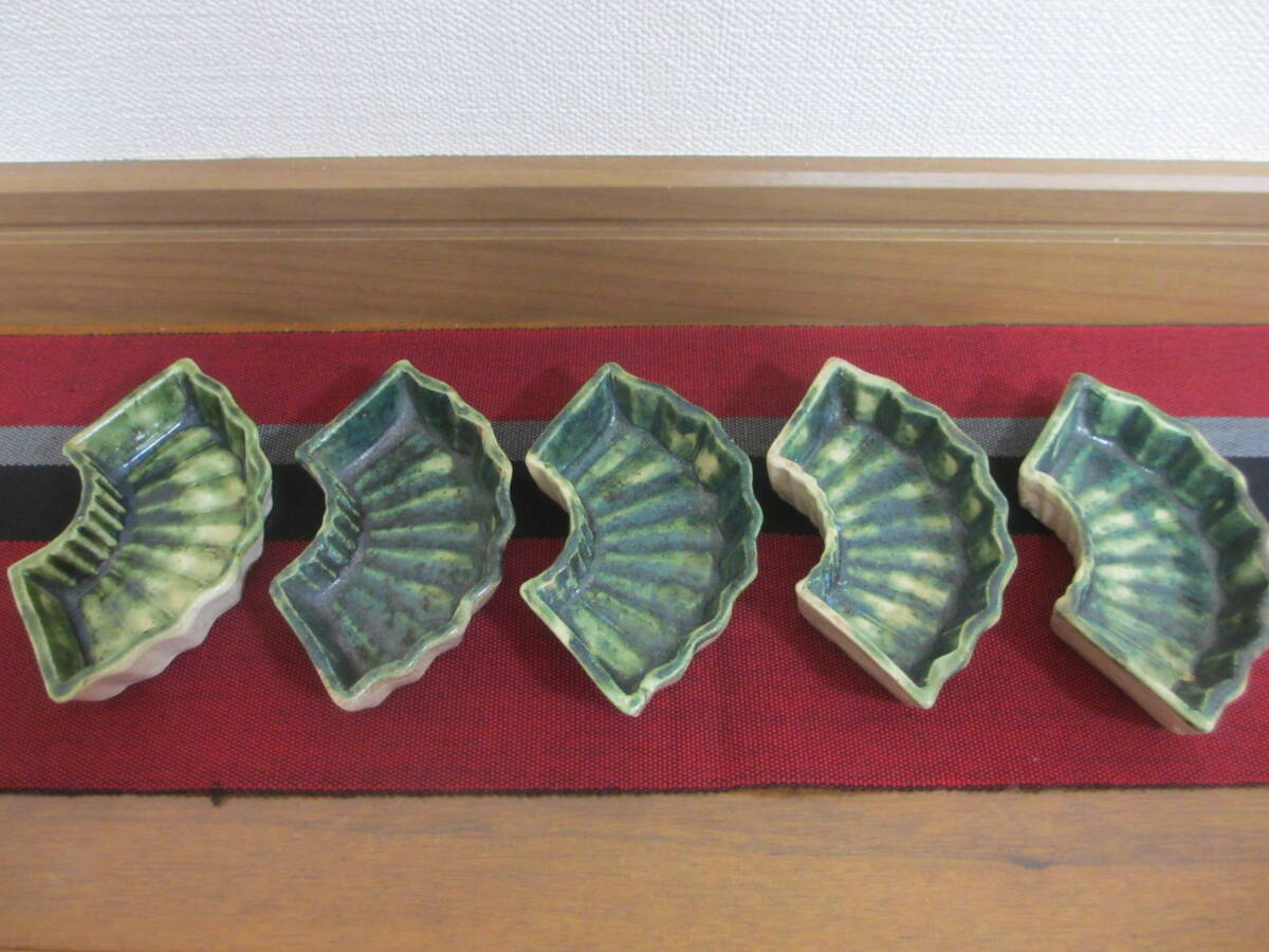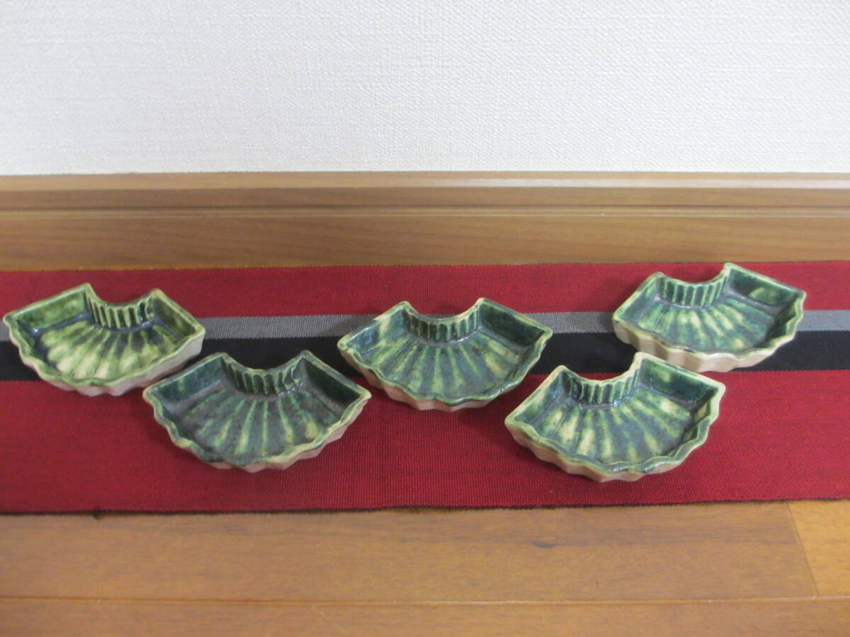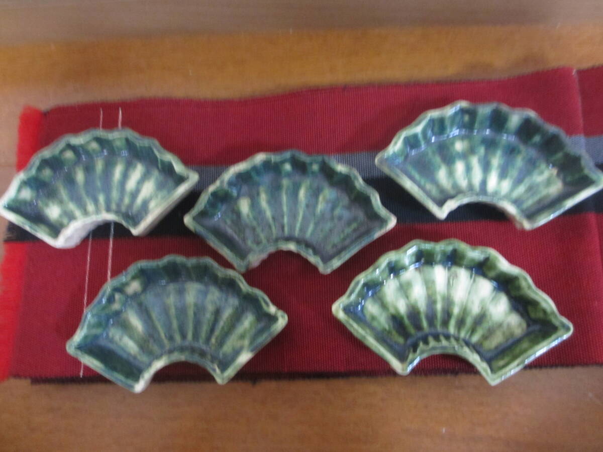 緑釉が見事に施されている時代が出ている扇型の織部焼です。見栄えも良く五客揃っています。| 出价者 | 信用 | 价格 | 时间 |