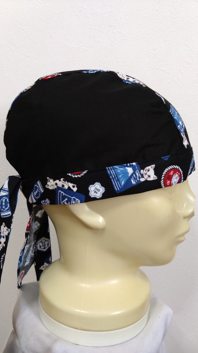 ★バンダナキャップ★ハンドメイド 和柄 酒×無地 ダルマ 日本酒 ネコ 黒 收藏