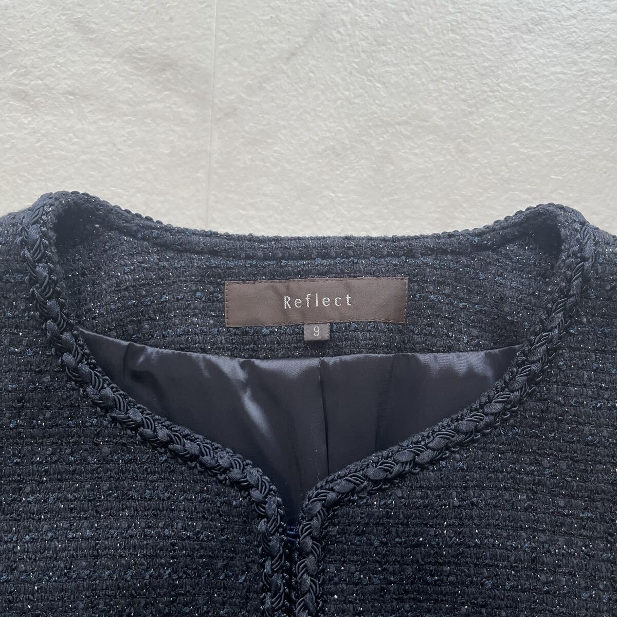リフレクト ツイードノーカラージャケット サイズ9 ネイビー セレモニー 紺