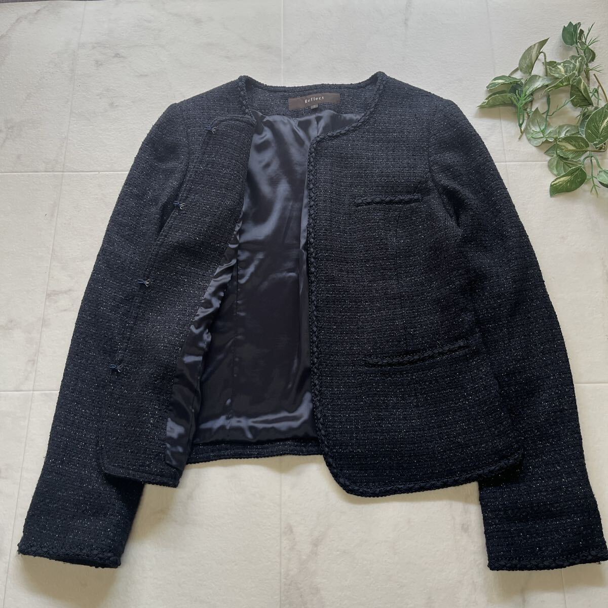 リフレクト ツイードノーカラージャケット サイズ9 ネイビー セレモニー 紺 收藏
