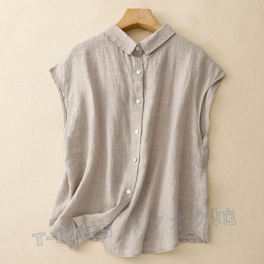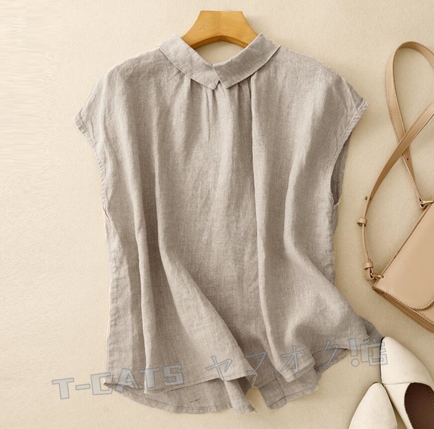 ☆新品夏 カジュアル リネンシャツ 半袖 レディース トップス 無地 シンプル 上品 大人かわいい 通勤 ブラウス 可愛い 大人気 チュニック 收藏