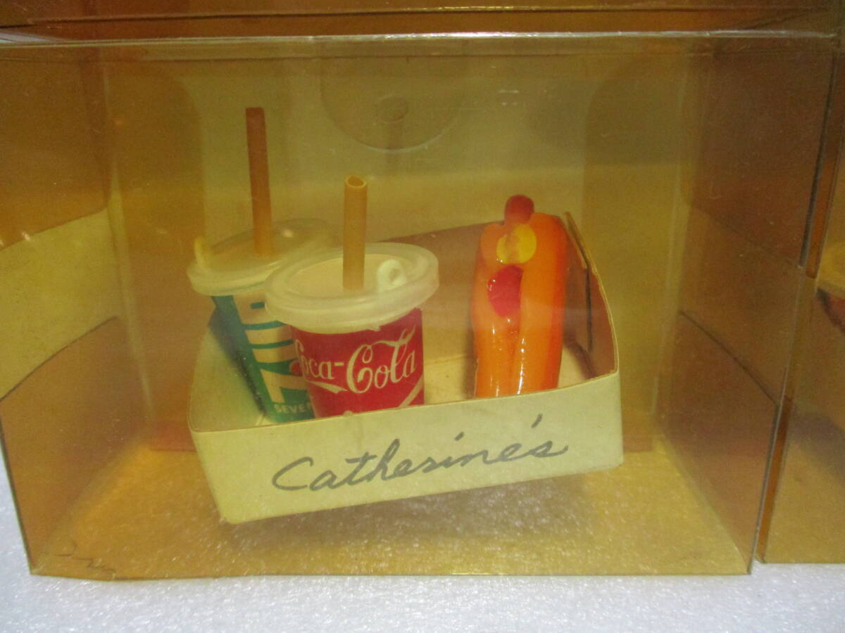 e84 送料600円 新品未開封 当時物 レトロ 食玩 ミニチュア サンプル まとめて 4個セット コーラ ホットドック ドリンク マグネット付き 收藏