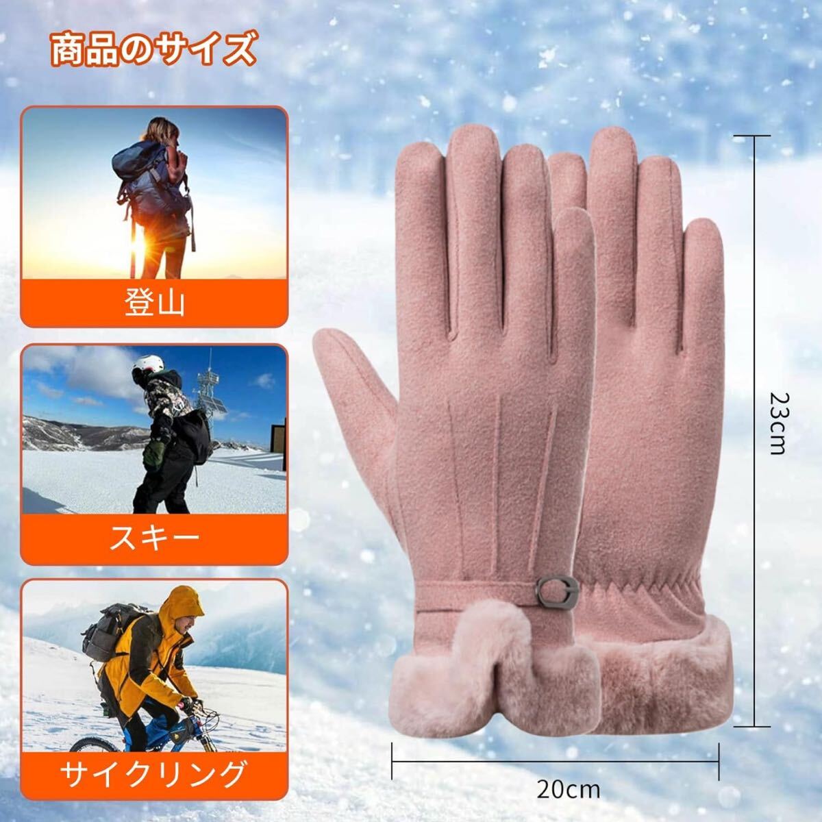 手袋 防寒 レディース スマホ対応 防風 暖かい 手袋 冬 裏起毛 手首ファー付 滑り止め付き ベージュ 收藏