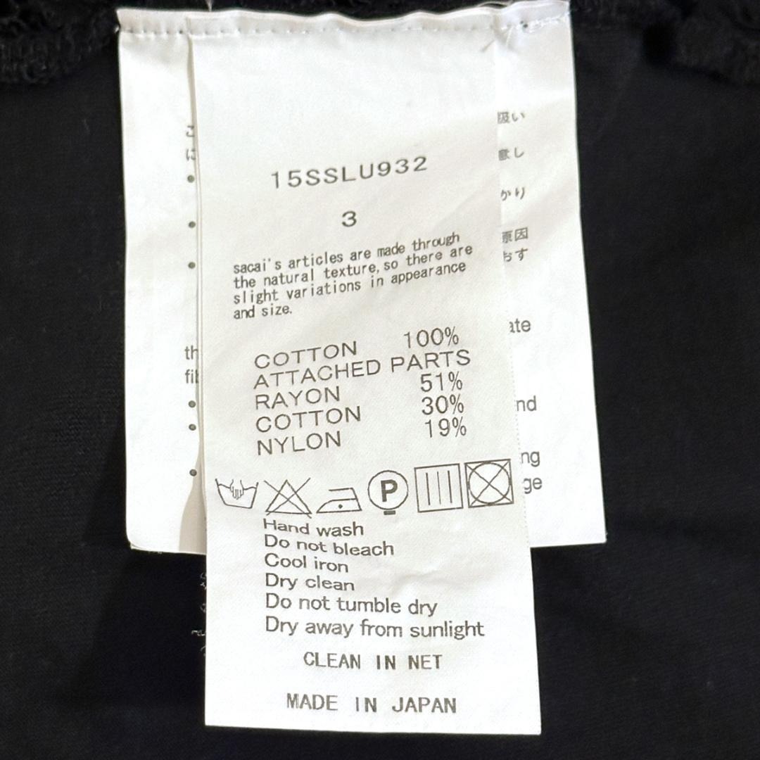 sacai luck Tシャツ バックレース 黒 サイズ3 ak539 收藏
