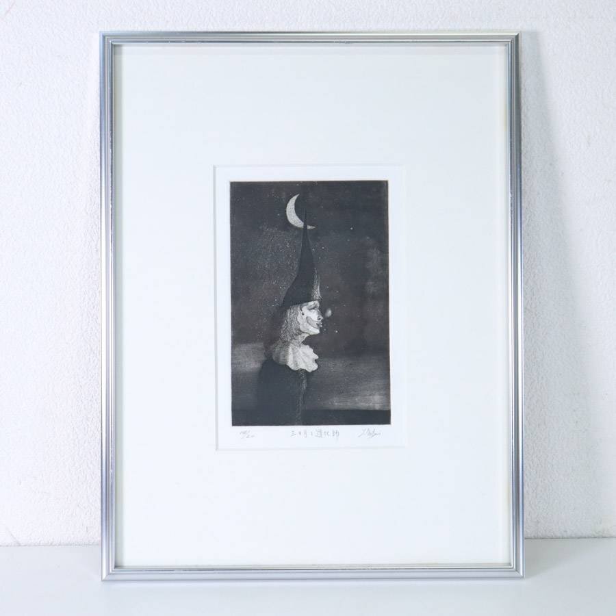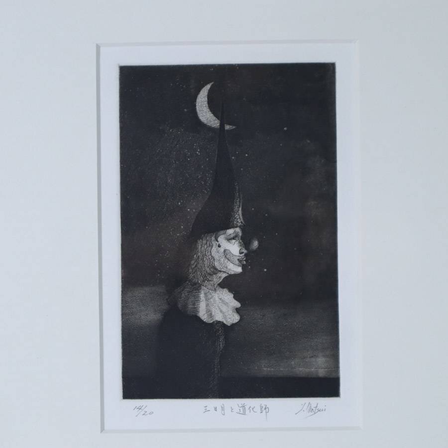 松井豊 銅版画 直筆サイン入り 「三日月と道化師」額装 14/20 主体美術協会会員★278h83 收藏