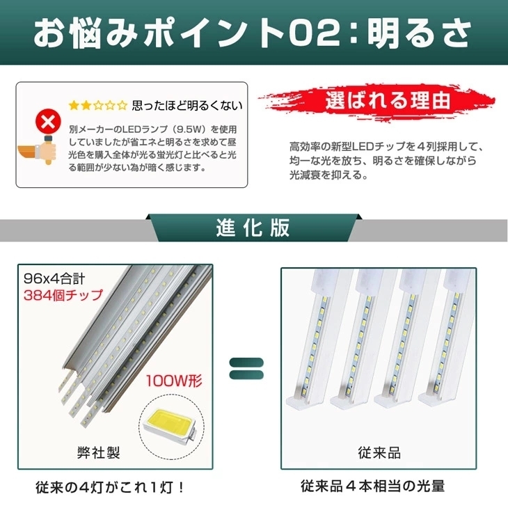 令和新登場進化版1灯・4灯相当 超高輝度LEDベースライト。発光効率が高い! ◆広照射範囲: 当商品は4列の高効率チップ、合計384個、を採用し、また、アーチ型の発行面に設計されており、そのため、従来の蛍光灯より照射範囲が広く、その上に、明るさも確保できます。 ◆高輝度: 明るさを確保しながらもまぶしさの抑制を実現! ◆低光衰: 安定な発光性能、5000時間後ルーメンも下げしません。 ◆省エネ: 省エネするため電気代を節約できます。 ◆長寿命: 約50000時間以上ご利用できます。 ◆演色: