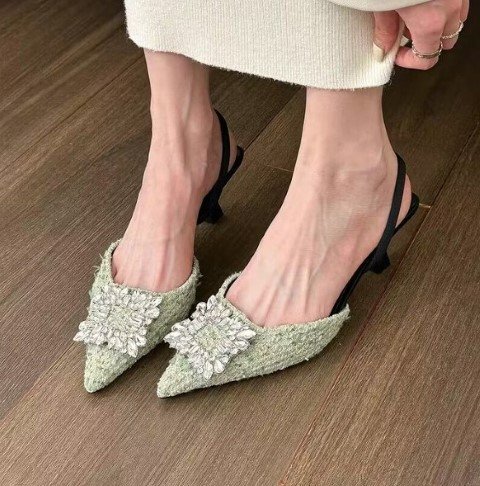 【高品質】全3色 スリッポン ローファー モカシン 切り替え とんがりトゥ sweet系 36 ライトグリーン 收藏