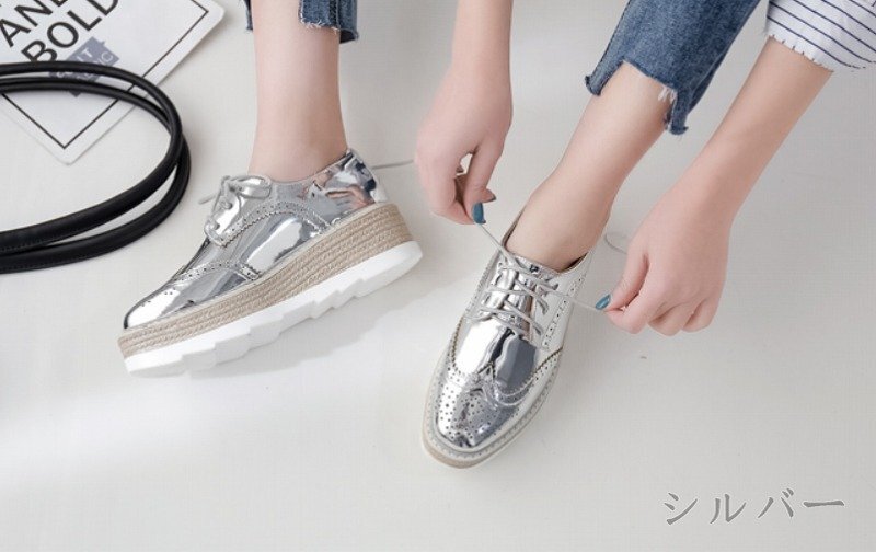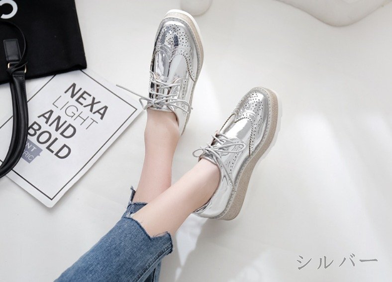 【高品質】全3色 スリッポン ローファー モカシン 厚底 ウエッジ 厚底靴 プラットフォーム sweet系 36 シルバー 收藏