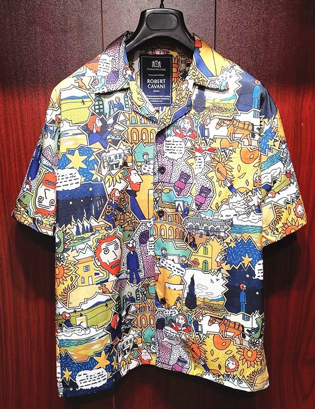 最高級※定価4万◆イタリア・ローマ発*ROBERT CAVANI/ロベルトカバーニ*高級シルク・イタリアン*アロハシャツ・50/XL・アニメ 收藏