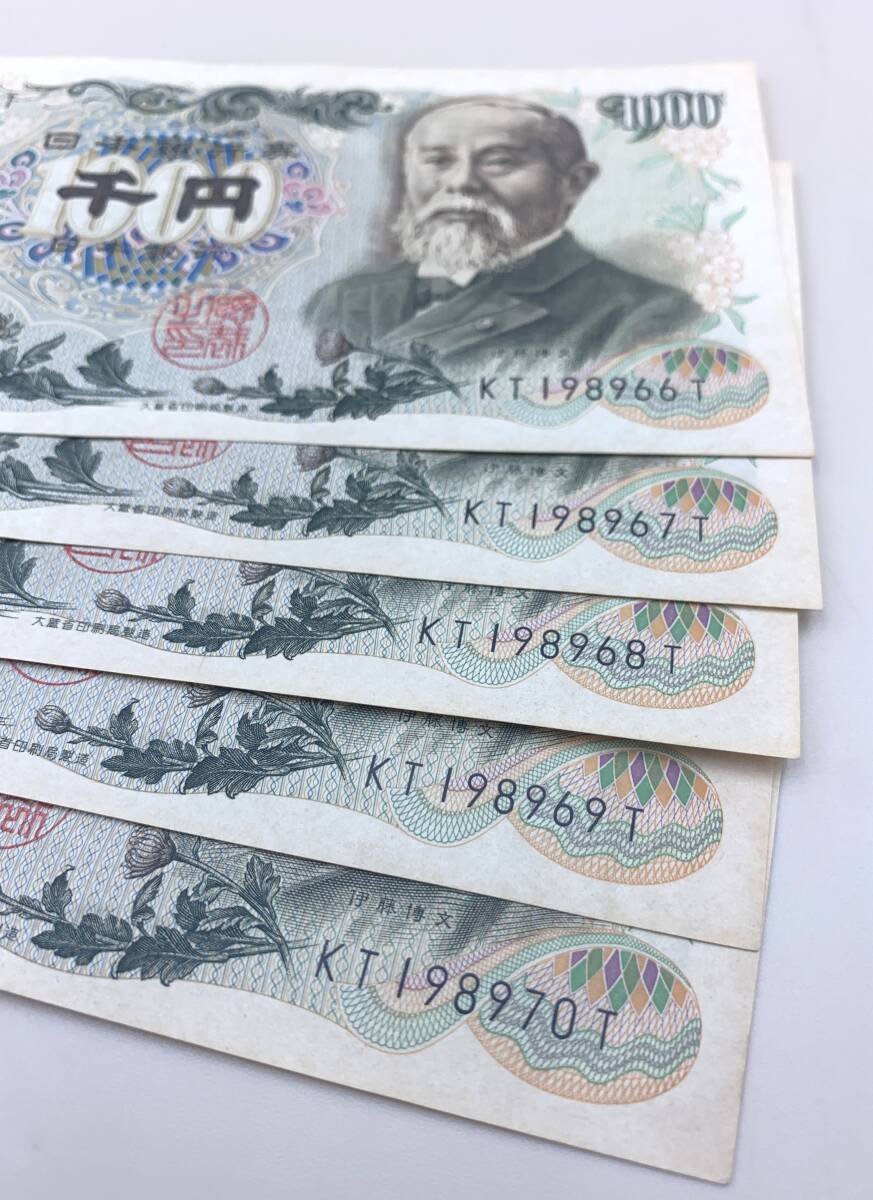 連番 5枚 伊藤博文 1000円札×5枚 5000円分 お金 旧札 千円札 大蔵省 日本銀行券