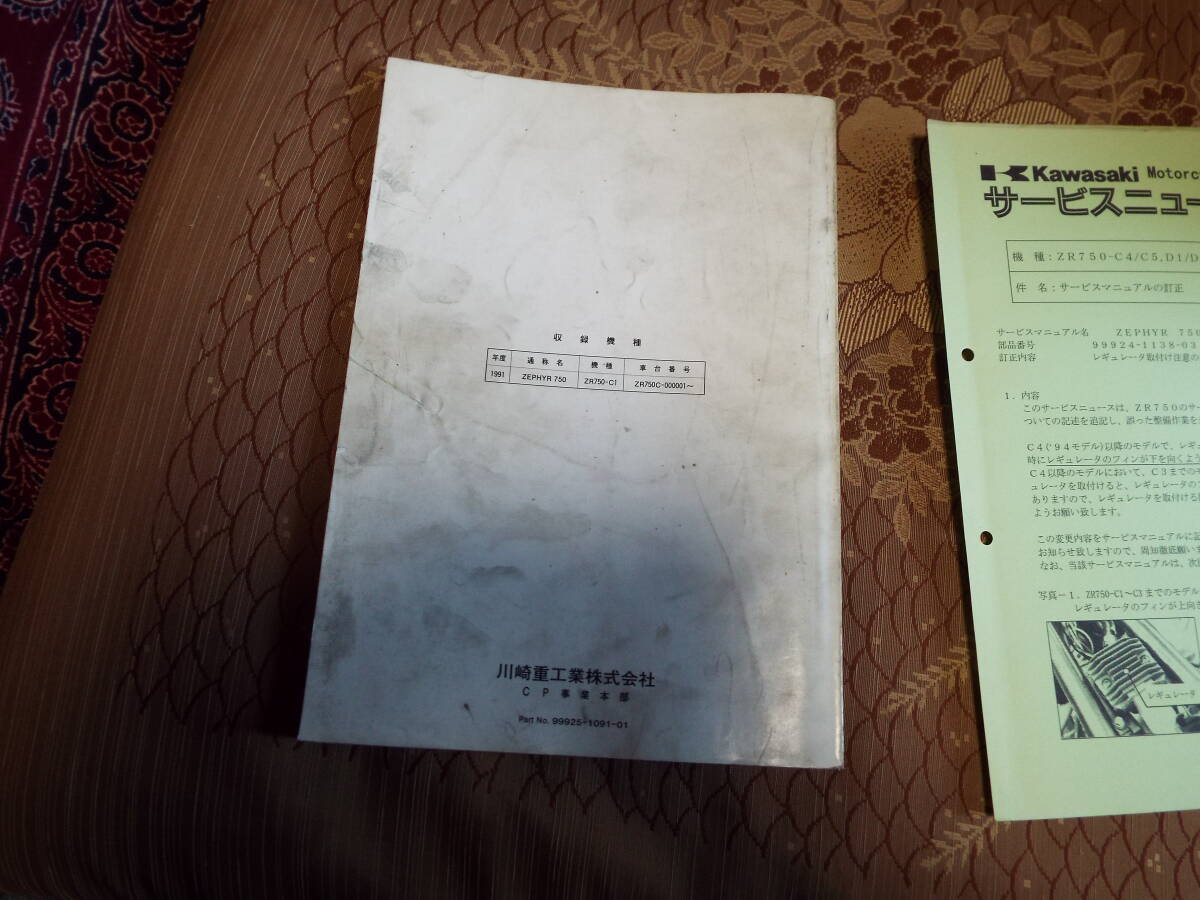 (断捨離屋)送185円 ゼファー750 (機種:ZR750-C1 車体番号:ZR750C-000)サービスマニュアル 1991年 收藏
