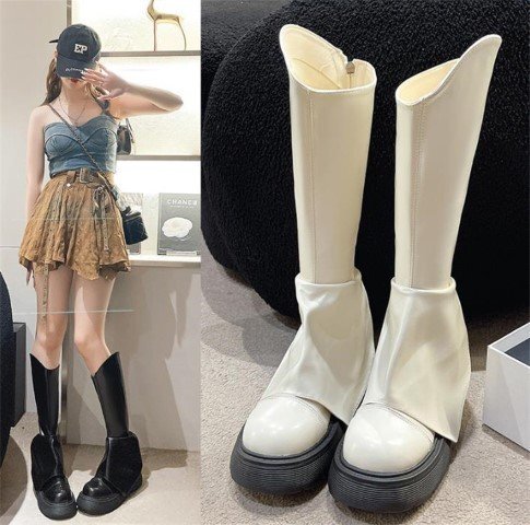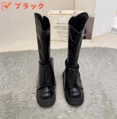 厚底 サドルブーツ ギャザリング パンプス ハイブーツ ロングブーツ 冬 Vポート 【38】24cm ベージュ 收藏