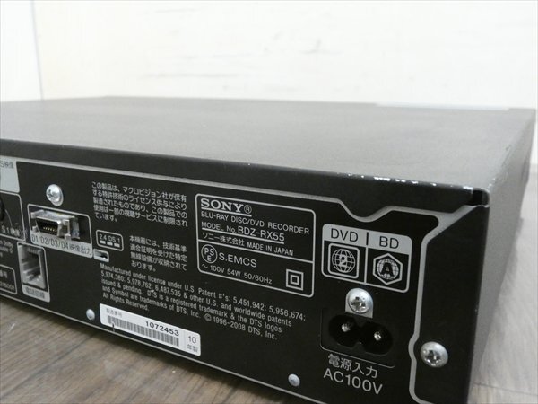 500GB☆10年☆ソニー/SONY☆HDD/BDレコーダー☆BDZ-RX55☆リモコン付☆2番組同時録画 管CX36405 收藏