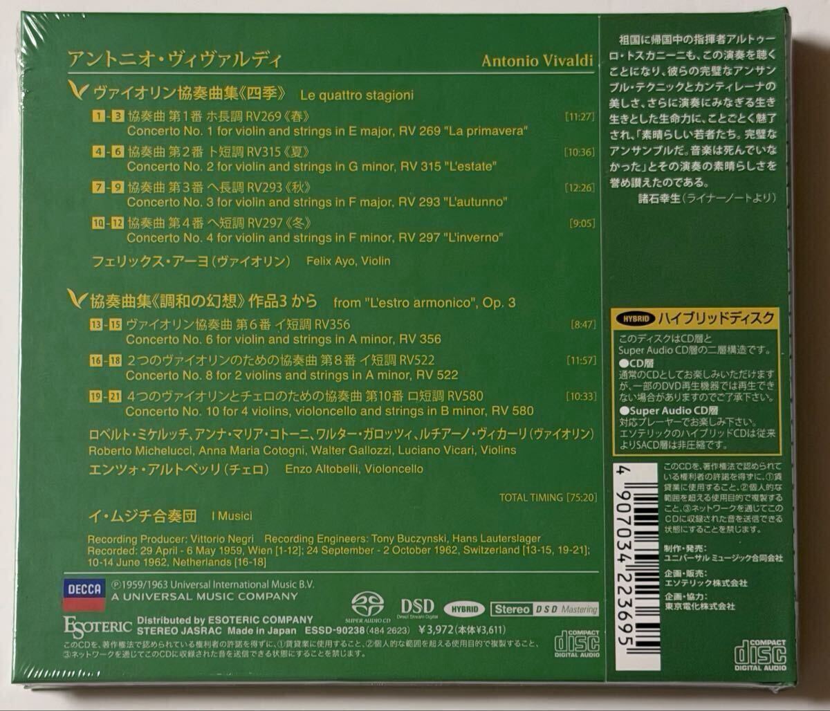 【未開封】ESOTERIC / イ・ムジチ合奏団 / ヴィヴァルディ:四季 / エソテリック / ハイブリッドSACD / factory sealed
