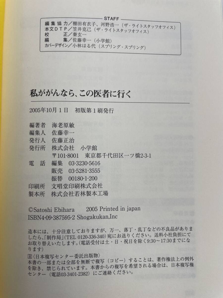 私ががんなら、この医者に行く 版 海老原敏編著 平成17年 2005年発行 初版【K186212】251022 收藏