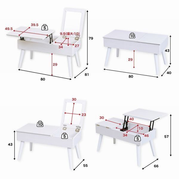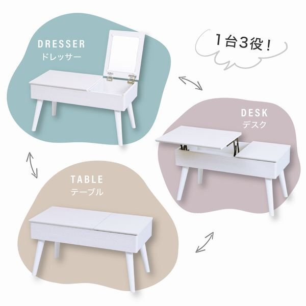 鏡台 テーブル★新品/リフティングドレッサー&テーブル&デスク 3役/限られたスペースに 半完成品/おしゃれな白家具 ホワイト/zz 收藏