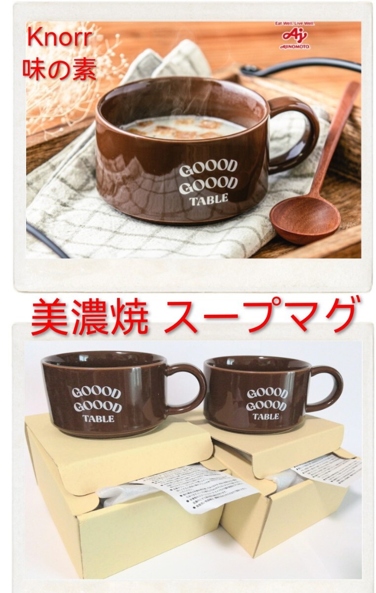 非売品新品「味の素 Ajinomoto Knorr 美濃焼 オリジナルスープマグ 2個 GOOOD GOOOD TABLE」グーグーライフ ジャンボマグカップも有 同梱可 收藏