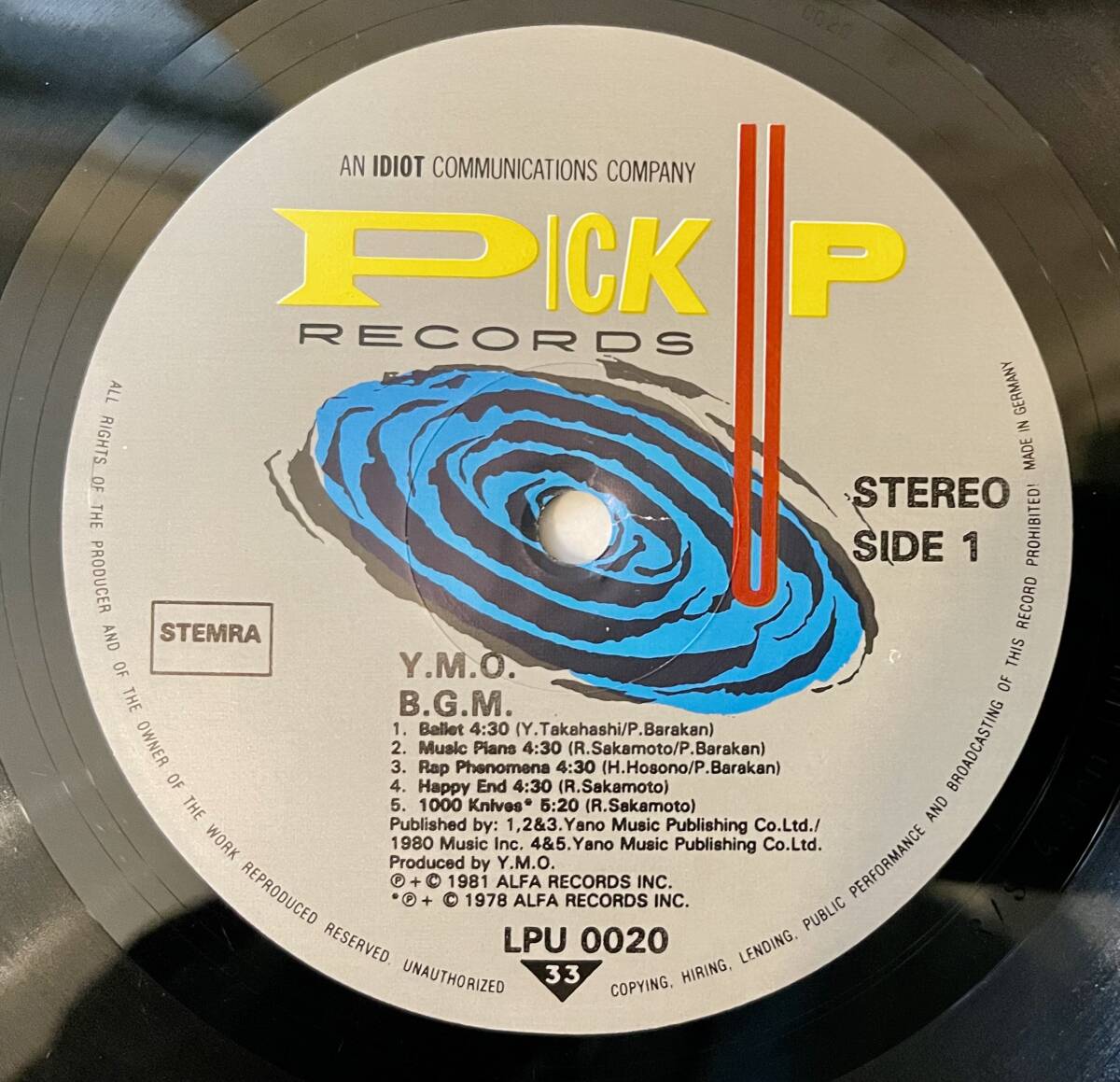 YMO YELLOW MAGIC ORCHESTRA 「BGM」海外盤 ドイツ盤 ( IDIOT PICK- UP盤 [LPU-0020] ) 新品 未使用盤 收藏