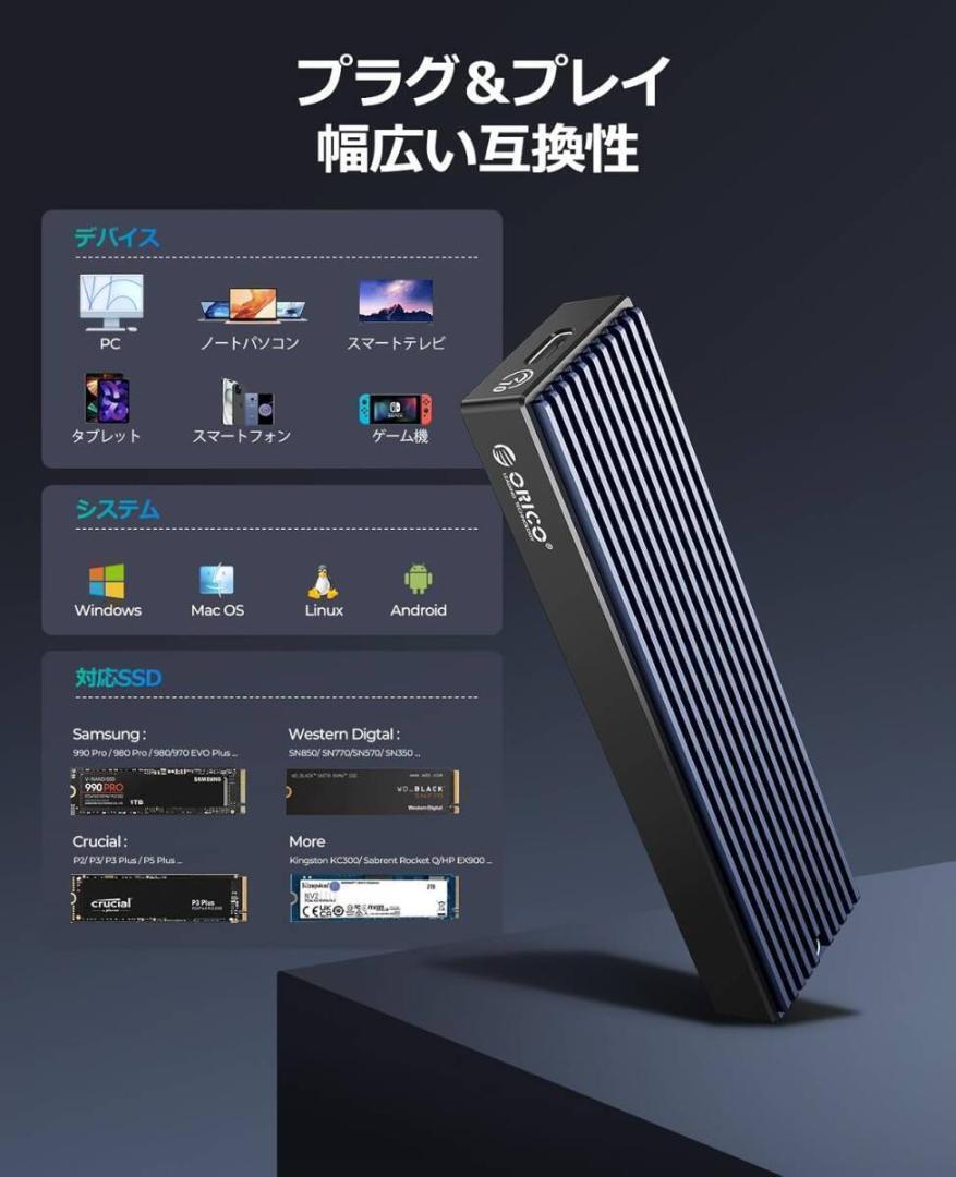 ORICO M.2 NVMe SSD 外付けケース USB 3.2 Gen2 10Gbps高速データ転送 NVMe/PCIE 対応2230/2224/2260/2280 SSD ケース M2 SSD 外付けケース 收藏