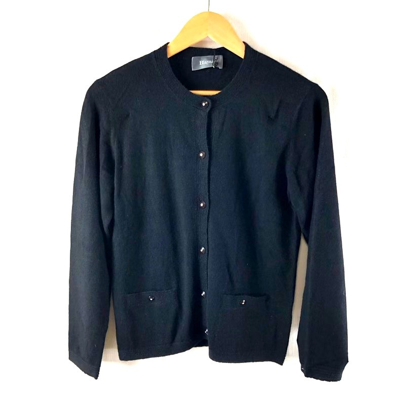 Blayais カーディガン カシミア100% 長袖 飾りボタン タグ付き 肩パット 黒 40サイズ 958616 收藏
