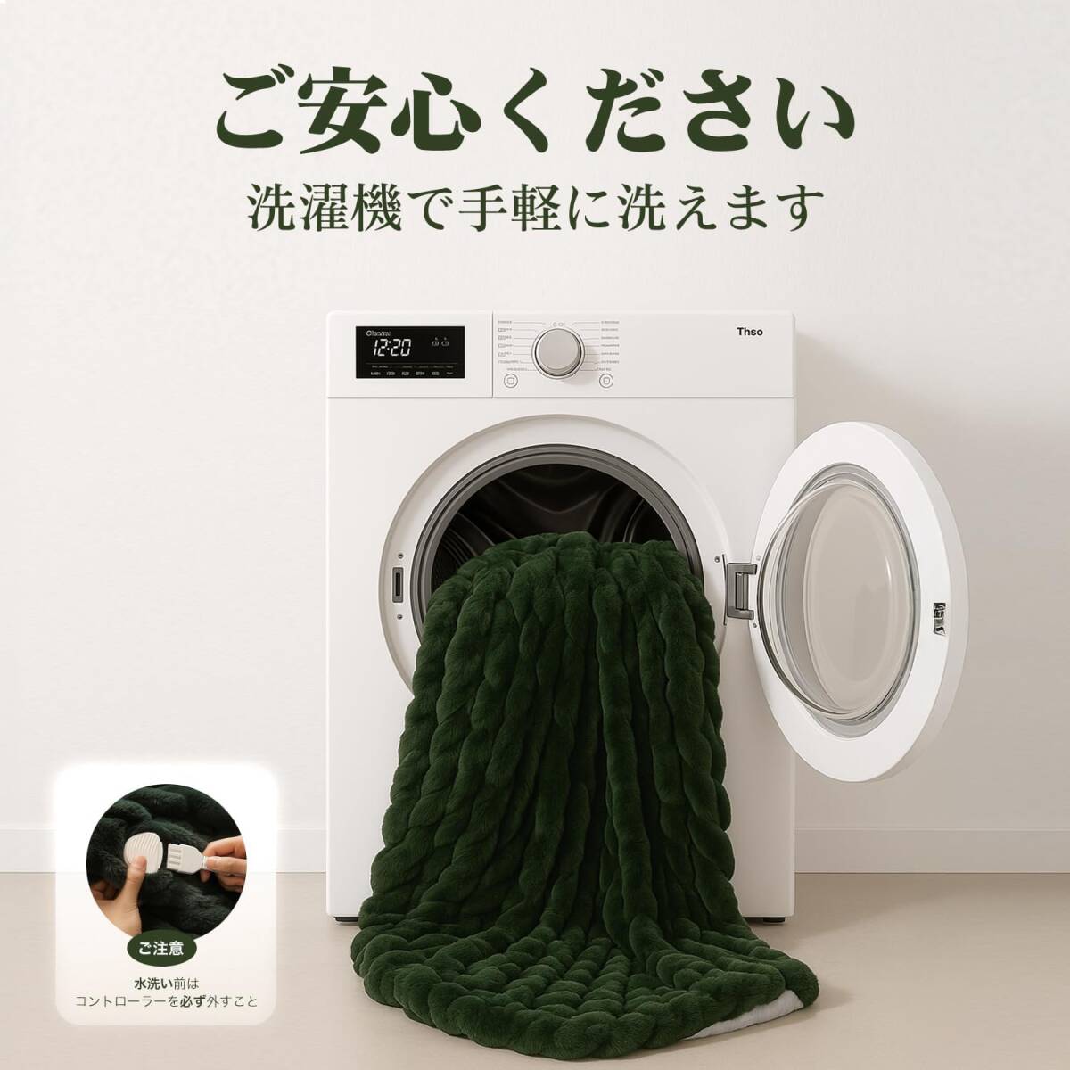 Rihazai 電気毛布 ひざ掛け丸洗い可能(洗濯機/手洗い対応) 掛け・敷布団両用 ふわふわ 170*130cm PSE認証済 (ダークグリーン) 收藏