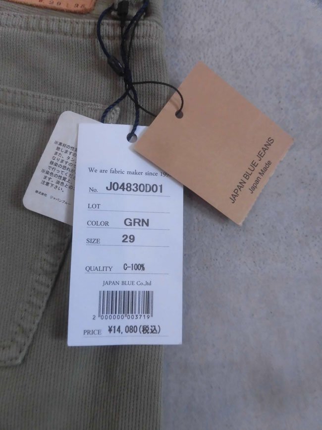 新品 JAPAN BLUE JEANS ジャパンブルージーンズ JB0409 10.5oz ヴィンテージ ピケパンツ W29/GRN/メンズ/J04830D01/日本製 收藏