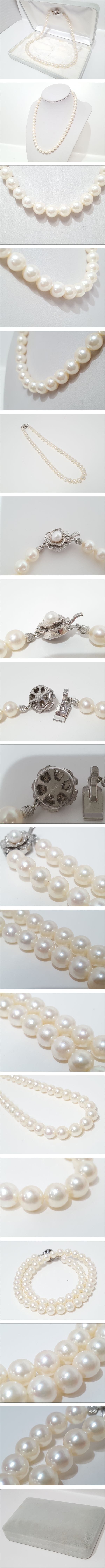 ※離島など別途中継手数料がかかる地域が御座います。 その場合はお振込みを追加でお願いする場合が御座います事、 事前にご了承の程、宜しくお願い致します。 ※送料には業者指定された運送用梱包資材代が含まれます。 専用BOX、段ボール梱包以外での補償は対象外となります。 [商品名] 1円スタート シルバー留具 あこや本真珠 ネックレス [サイズ] 全長約43cm, パール粒約0.73-0.77cm [素材] シルバー×本真珠 [カラー] ホワイト系 [仕様] ケース付き(汚れが御座います) [状態] 留具に小キズ、金属の変質箇所が御座いますが、 その他は良いと思います。