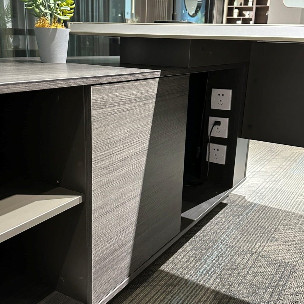 ☆このオーナーデスクの最大の特徴は、100ボルト電源が内蔵され、ノートパソコンやスマートフォンなどの最新機器との接続が容易になり、ビジネスシーンでの利便性が大幅に向上します