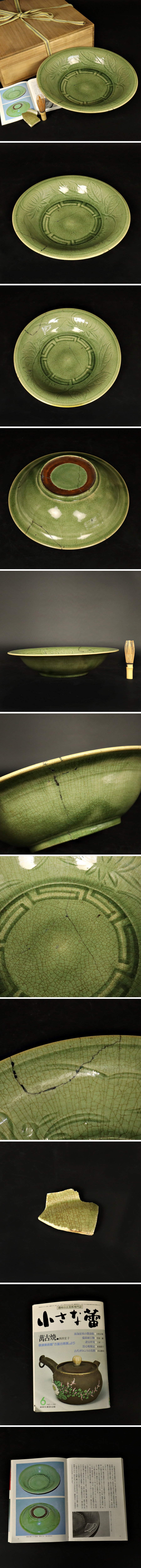江戸期 伝来 幻の焼物 姫谷焼 青磁大鉢 【小さな蕾掲載】 所載物 箱 福山 備後 骨董品 古美術品 6352sebbzS 收藏