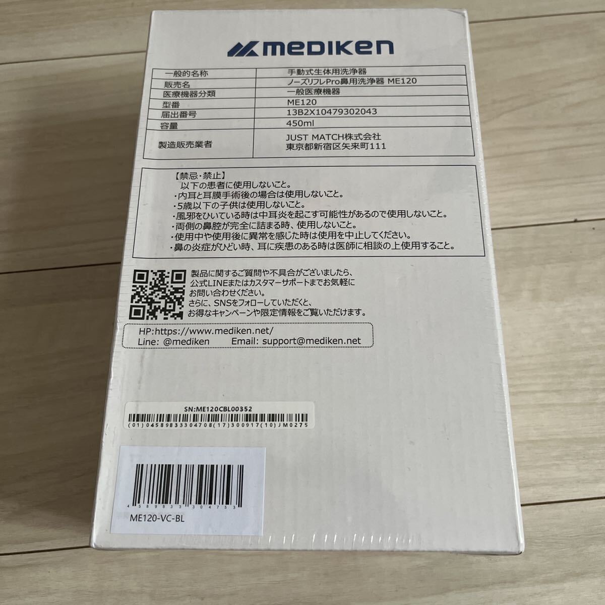 メディケン(MEDIKEN) ノーズリフレPro 鼻用洗浄器 ME120 鼻うがい【鼻洗浄剤40回分+450ml容器】 (ホワイト)