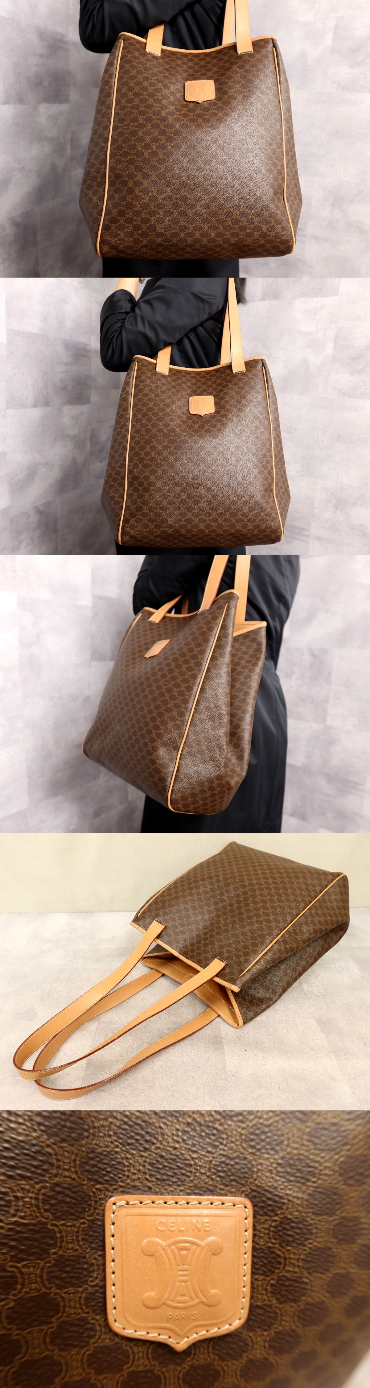 超美品●CELINE セリーヌ●マカダム●PVC カーフ レザー 本革●トート ショルダー バッグ●ブラウン ベージュ●ヴィンテージ●A4●Js62085 收藏