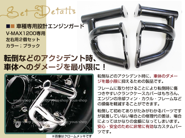 YAMAHA V-MAX1200 エンジンガード ブラック メッキ VMAX エンジンスライダー 冷却フィン カウル フレームなどの損傷から保護 收藏