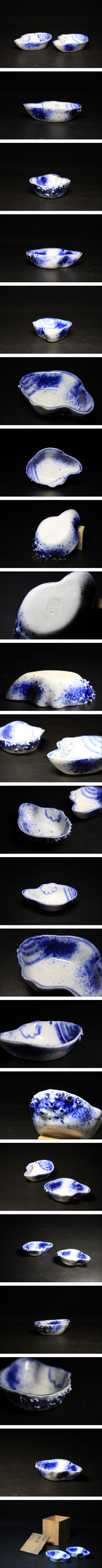 □■極上作!永楽善五郎 得全 吹墨 ほらがい 豆皿 二客 醤油皿 手塩皿 小皿 古染付写し 普段使いから来客時にも!■□懐石 料亭 割烹 收藏