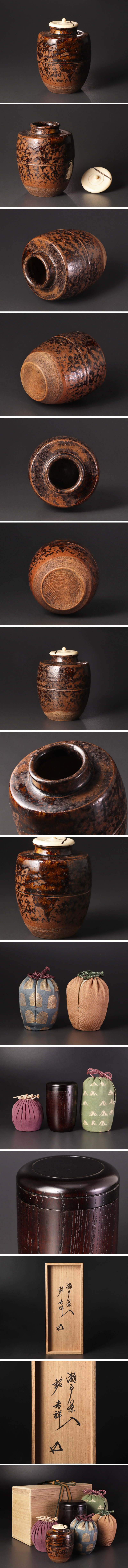 釉薬のなだれが穏やかな景色を生み、表情豊かな茶入れです。 仕覆3枚(裂不明)付属いたします。 ★商品は鵬雲斎書付の作品である事を保証致します。 |