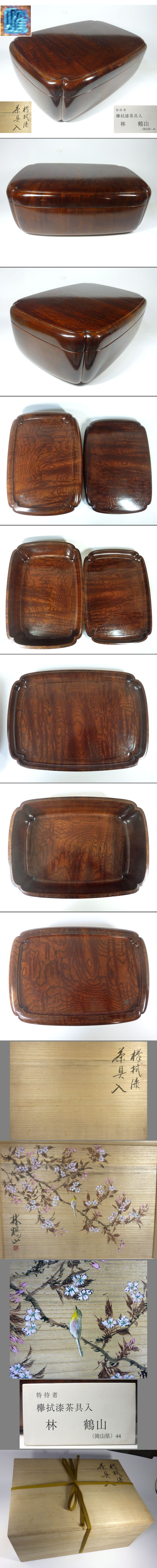 | 概要 | 林 鶴山の大振り欅拭漆茶具入で、日本伝統工芸展に特待者として出品されたものです。 |