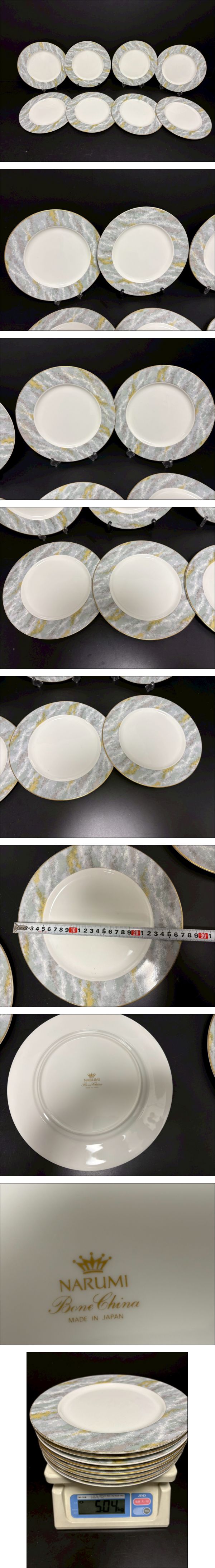 | ★a-123 NARUMI ナルミ 鳴海 プレート 大皿 レストラン 洋食器 食器 金彩 陶器製 約5㎏ 8枚 直径約27㎝ | ||